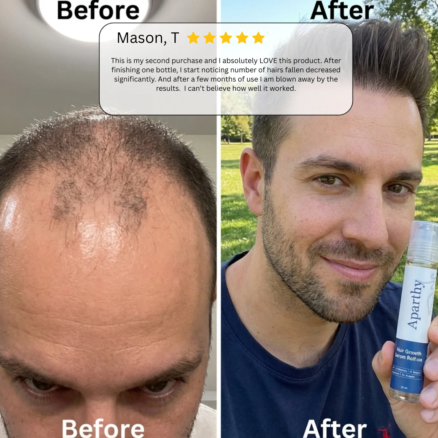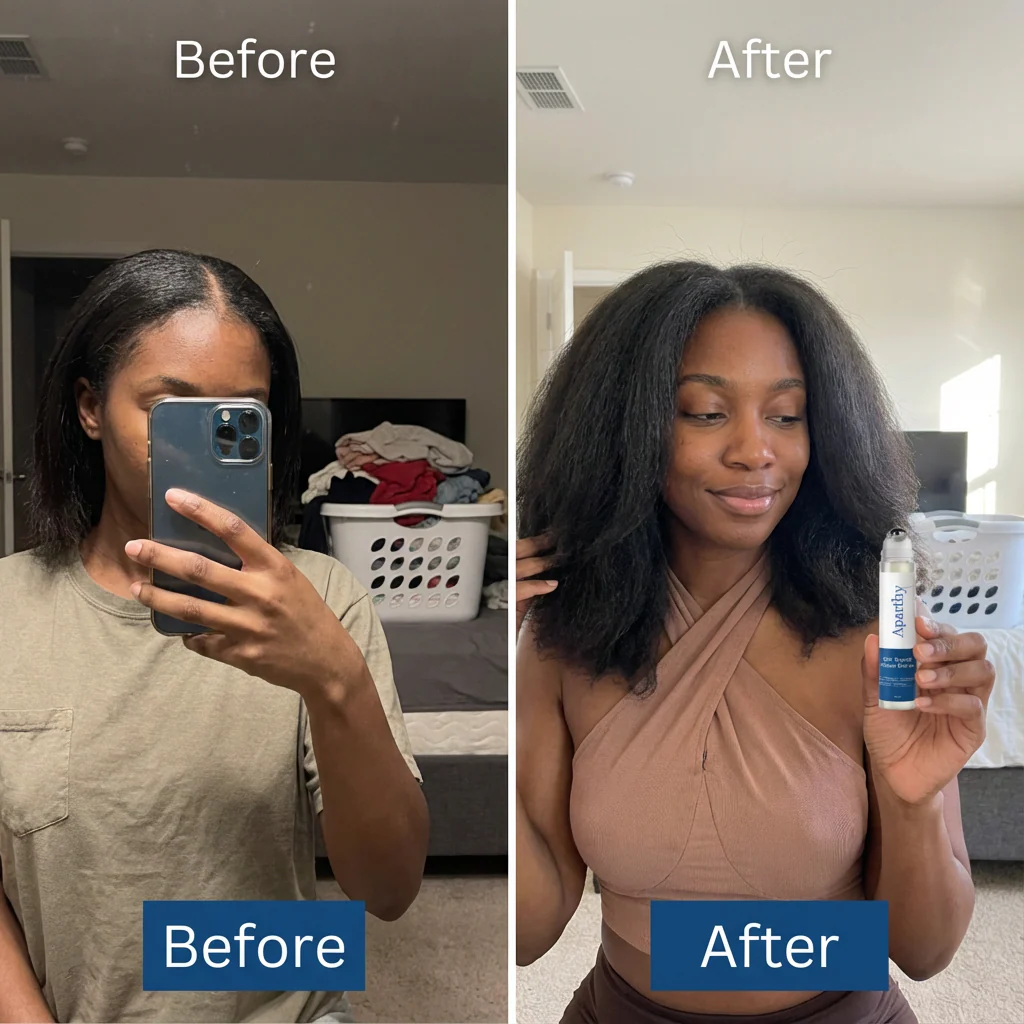 Aparthy is different. We engineered a smart delivery system. Our roll-on applicator combined with a lightweight molecular formula ensures nutrients reach the follicle bulb instantly alongside our targeted roll-on approach.