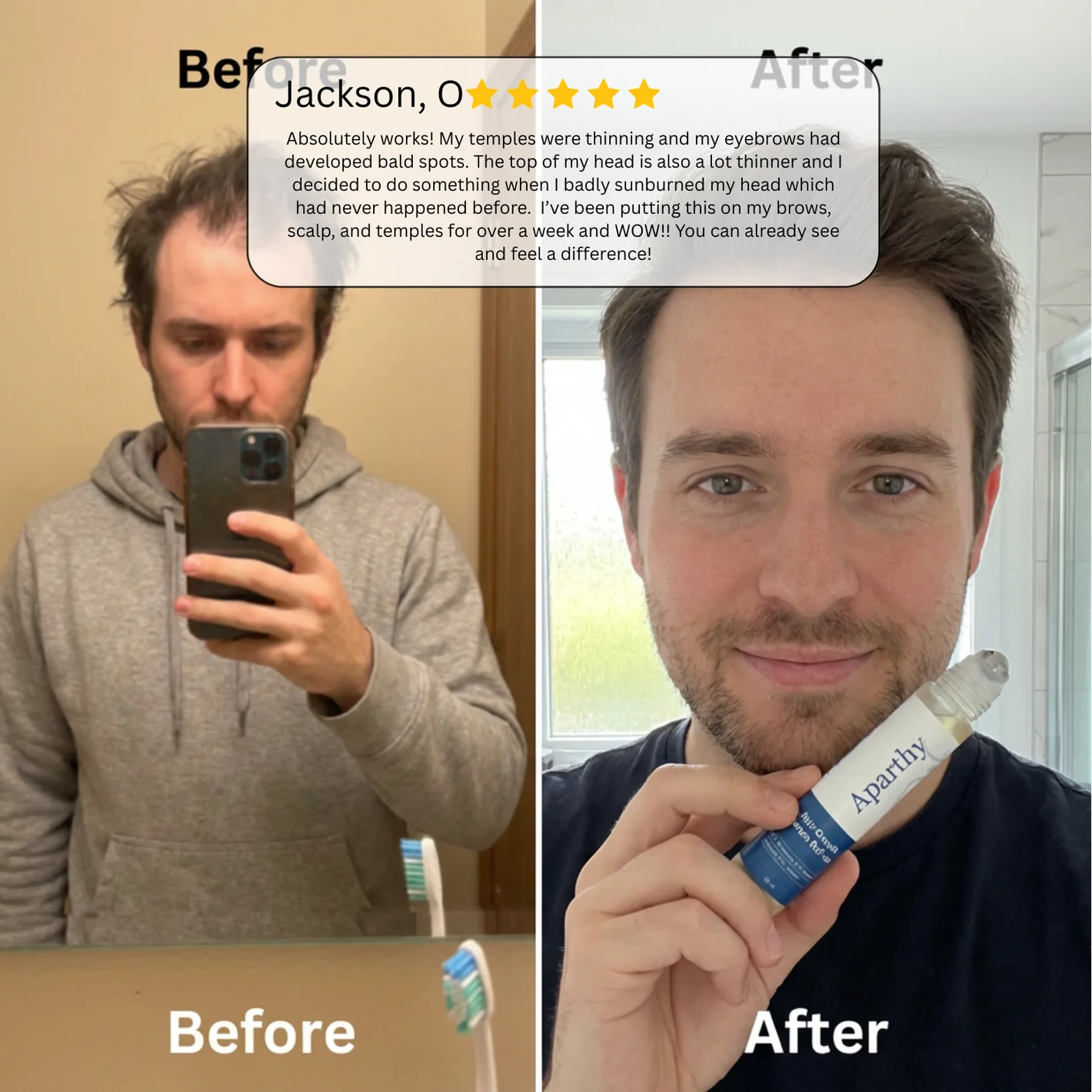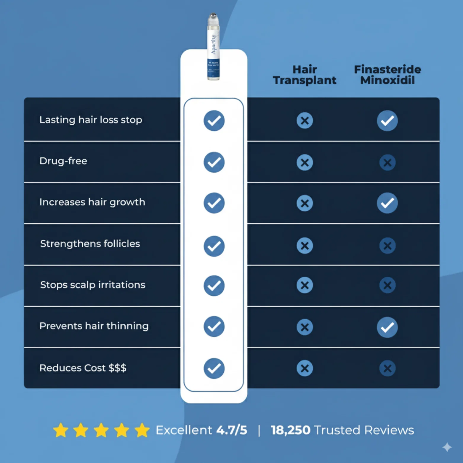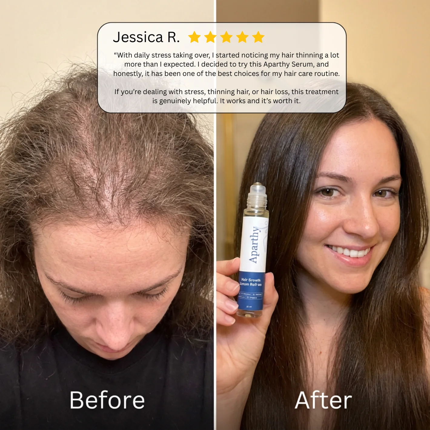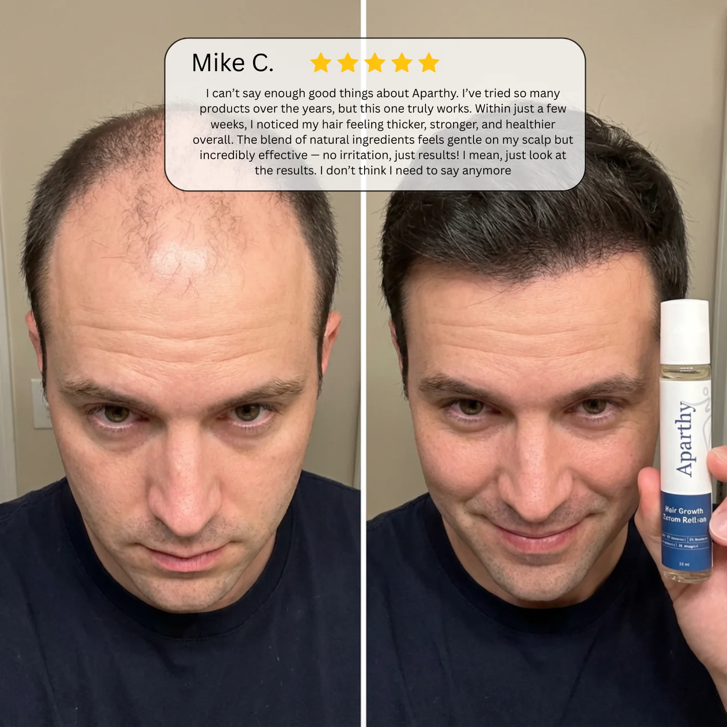 Aparthy is different. We engineered a smart delivery system. Our roll-on applicator combined with a lightweight molecular formula ensures nutrients reach the follicle bulb instantly alongside our targeted roll-on approach.