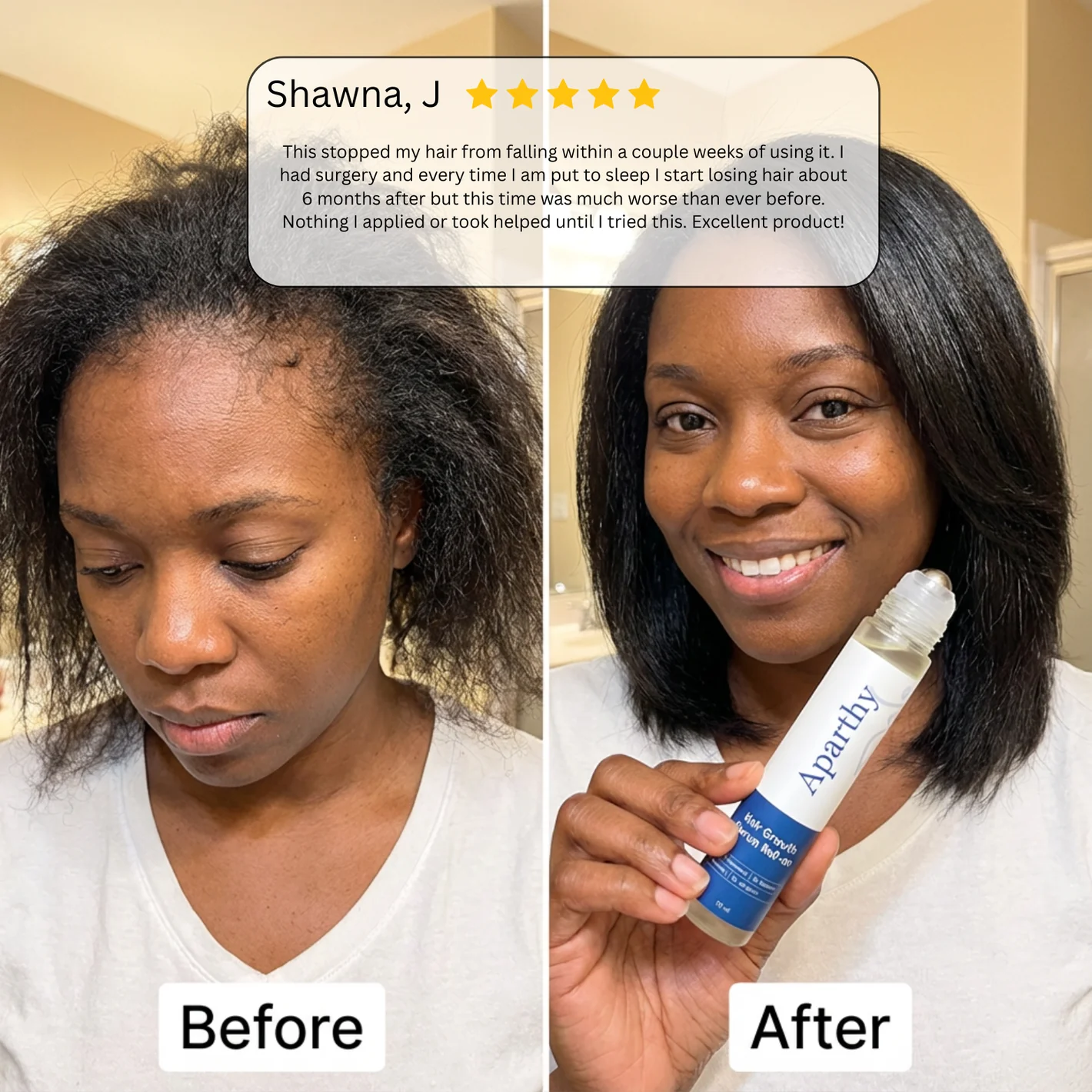 Unlike Mnoridl which oten forces har into shading phae betore growing our Root Lck technolgy dslgned to anchor the hai fist Whle mior turnover noral for anygrowth product, Aparthy is specifically formulated to minimize shedding anxiety.